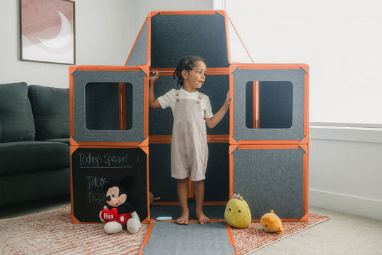 Avec son design moderne et ses matériaux en feutre, Playmde™ s’intègre parfaitement dans votre salon ou la chambre de votre enfant.