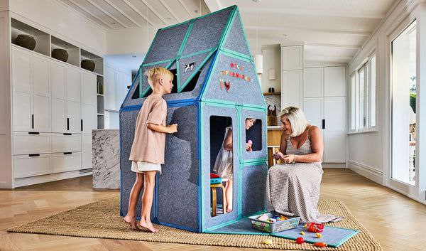 Conçue en feutre épais, la cabane Playmde™ favorise l’imagination tout en garantissant un environnement confortable et sans danger